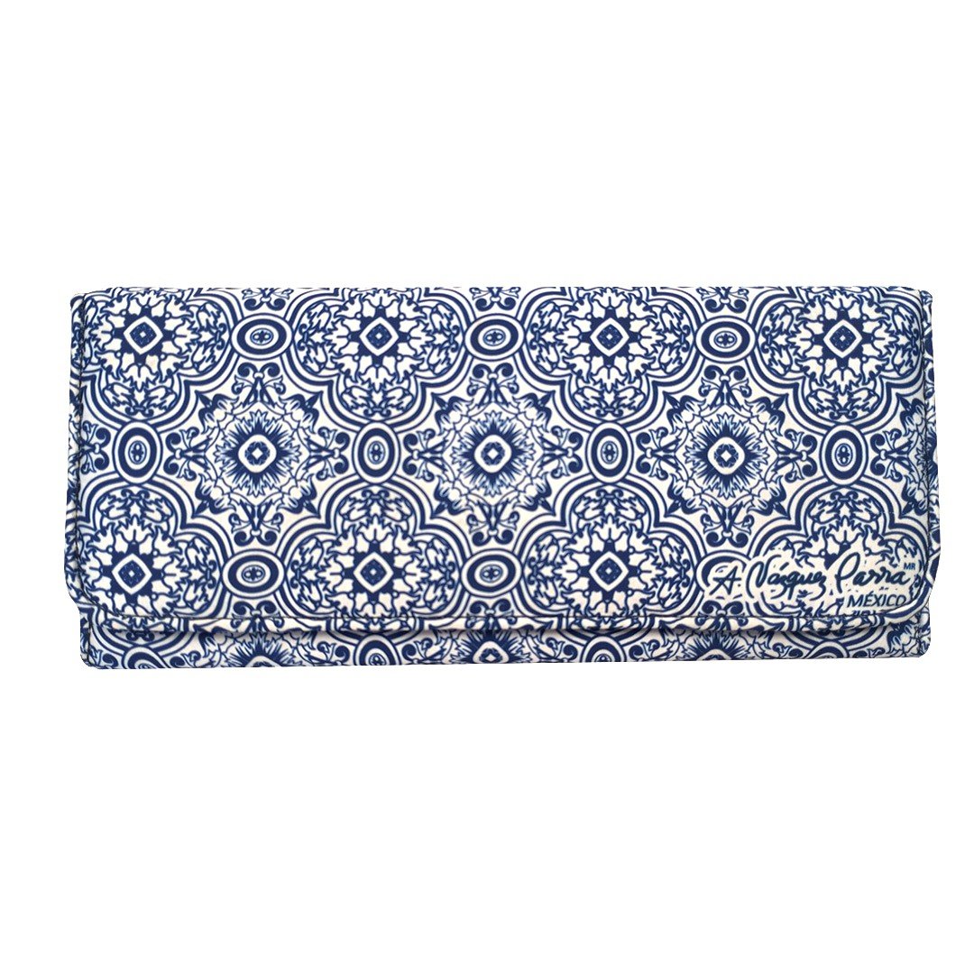 La Cartera Talavera Azul Blanca está elaborada con materiales duraderos y de alta calidad que garantizan su resistencia y longevidad. Su superficie está diseñada para mantener los detalles vivos y los colores vibrantes con el paso del tiempo. Cada patrón se reproduce cuidadosamente para capturar la esencia de la cerámica Talavera, permitiéndote llevar contigo una pieza de la cultura mexicana dondequiera que vayas.
